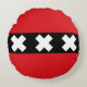 Round Pillow with design with flag of Amsterdam, capital city of Netherlands, red and black flag with three white Saint Andrew’s crosses in the centre