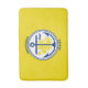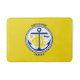 Bath mat with city of Anchorage, Alaska; yellow flag with white seal with an illustration of a blue ship and anchor