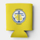Can Cooler with city of Anchorage, Alaska; yellow flag with white seal with an illustration of a blue ship and anchor
