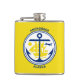 Vinyl wrapped flask with city of Anchorage, Alaska; yellow flag with white seal with an illustration of a blue ship and anchor