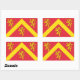 Sticker with design with a flag of historic county of Anglesey, in Wales, Great Britain;; red flag with yellow chevron and three lions;
