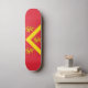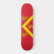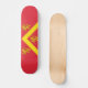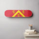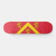 Skateboard with design with a flag of historic county of Anglesey, in Wales, Great Britain;; red flag with yellow chevron and three lions;