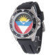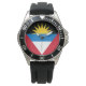 This design features the national flag of Antigua and Barbuda, which is an island sovereign state in the West Indies in the Americas, lying between the Caribbean Sea and the Atlantic Ocean. It consists of two major islands, Antigua and Barbuda, and a number of smaller islands (including Great Bird, Green, Guiana, Long, Maiden, Prickly Pear, York Islands and further south, the island of Redonda). The capital and largest port and city is St. John's on Antigua, while Codrington is the largest town on Barbuda.
