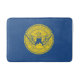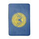 Bath mat with flag of city of Atlanta, Georgia; blue flag with yellow seal with an illustration of phoenix rising from flames