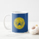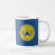 Mug with flag of city of Atlanta, Georgia; blue flag with yellow seal with an illustration of eagle