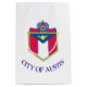 Gift Bag with the flag of Austin, Texas. A white flag with city’s coat of arms in the centre