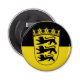 Button bottle opener with variant flag of Baden-Württemberg; design with two horizontal bands of black and yellow (golden), and emblem with shield with three black lions in the centre