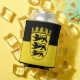 Can cooler with variant flag of Baden-Württemberg; design with two horizontal bands of black and yellow (golden), and emblem with shield with three black lions in the centre