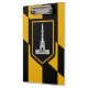Clipboard with flag of city of Baltimore, Maryland; black and yellow flag with an illustration of Battle Monument