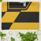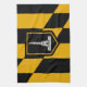 Kitchen Towel with flag of city of Baltimore, Maryland; black and yellow flag with an illustration of Battle Monument