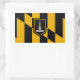Sticker with flag of city of Baltimore, Maryland; black and yellow flag with an illustration of Battle Monument