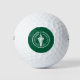 Golf balls with design with flag of Bangkok, capital city of Kingdom of Thailand; green flag with white illustration of an elephant in the centre