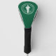 Golf driver cover with design with flag of Bangkok, capital city of Kingdom of Thailand; green flag with white illustration of an elephant in the centre