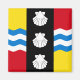 Magnet with a flag of historic county of Bedfordshire, in England, Great Britain; red and gold flag with black vertical band with tree white scallops in the center