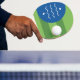 Ping Pong Paddle with a design with the flag of Bellingham, Washington. A green and blue flag