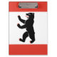 Clipboard with flag of Berlin, state flag with horizontal stripes of red and white, with an illustration of a black bear in the centre