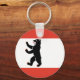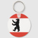 Button Keychain with flag of Berlin, state flag with horizontal stripes of red and white, with an illustration of a black bear in the centre