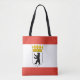 Tote bag with variant flag of Berlin, state flag with horizontal stripes of red and white, with an illustration of a black bear inside a shield with a crown