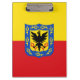 Clipboard with design with flag of Bogota, capital city of Colombia, red and yellow flag with coat of arms with eagle in the centre