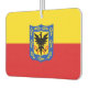 Air Freshener with design with flag of Bogota, capital city of Colombia, red and yellow flag with coat of arms with eagle in the centre