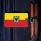 Luggage Tag with design with flag of Bogota, capital city of Columbia, red and yellow flag with coat of arms with eagle in the centre