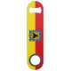Bottle Opener with design with flag of Bogota, capital city of Colombia, red and yellow flag with coat of arms with eagle in the centre
