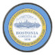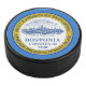 Hockey puck with flag of city of Boston, Massachusetts; light blue flag with seal of the city