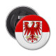 Button bottle opener with flag of Brandenburg (Brandenburgs), design with two bands of red and white with state’s coat of arms with an illustration of a red eagle in the centre