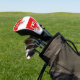 Golf driver cover with flag of Brandenburg (Brandenburgs), design with two bands of red and white with state’s coat of arms with an illustration of a red eagle in the centre