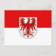 Postcard with flag of Brandenburg (Brandenburgs), design with two bands of red and white with state’s coat of arms with an illustration of a red eagle in the centre