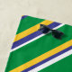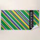 This beach towel design features a pattern of stripes (or lines) of various widths, coloured green, yellow, blue or white. These colours were inspired by those of the national flag of Brazil. It also features a customised name in white coloured text within a dark coloured area on the front. [~Z0000000]
