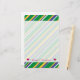 This stationery design features a pattern of stripes (or lines) of various widths, coloured green, yellow, blue or white. These colours were inspired by those of the national flag of Brazil. It also features a custom name near the bottom, between heart shapes. [~Z0000011]
