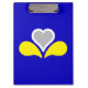Clipboard with design with flag of Brussels-Capital Region of Belgium, blue flag with yellow, grey and white iris