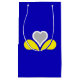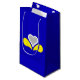 Paper bag with design with flag of Brussels-Capital Region of Belgium, blue flag with yellow, grey and white iris