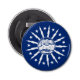 Button bottle opener with flag of city of Buffalo, New York; blue flag with white seal of the city and 13 lightning bolts