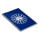 Notebook with flag of city of Buffalo, New York; blue flag with white seal of the city and 13 lightning bolts