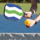 Pickleball Paddle with a design with the flag of Burlington, Vermont. A blue, white, and green flag