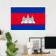 This design features the national flag of Cambodia (officially known as the Kingdom of Cambodia), which is a country in Southeast Asia, located in the southern portion of the Indochina peninsula. Cambodia is bordered by Thailand to the northwest, Laos to the northeast, Vietnam to the east and the Gulf of Thailand to the southwest. The flag of Cambodia contains a depiction of Angkor Wat, one of the largest temple complexes and religious monuments in the world. The capital city of Cambodia is Phnom Penh. Other major cities in Cambodia include Ta Khmau, Serei Saophoan, Battambang, Siem Reap, Kampong Cham, Sihanoukville, Chbar Mon, Kampot and Kampong Chhnang.