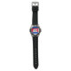 Has heft and feel of expensive stainless steel quartz wrist watches. Solid construction and good looks. Although it had a really top quality rubber strap, I substituted a stainless steel "Shark" style mesh strap, which I think is the most comfortable strap available. Perfect. True colors of original image. Clear, crisp image precisely aligned and spaced.