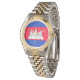 The watch is very nice, the picture is great and the watch looks like quality. The only problem I am having with it is that it is a little too large, and I also can't figure out how to open the clasp. No directions came with it. Very good. The printing is perfect and the watch keeps good time.