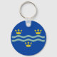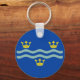 Keychain with design with a flag of historic county of Cambridgeshire, in England, Great Britain; blue flag with three golden crowns and two waves