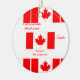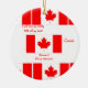 Ornaments designed with the flag of canada along with a sentimental phrase written by ralph verbal staples