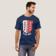 I give wanted to give this a 4 instead of a 5 because these Basic DARK T0shirts run unexpectedly SLIM or Narrow. Which is great if you do not have a potbelly, but I have a paunch. It isn't the shirt's fault that I've got a beer belly. The design and shirt itself is a quality cotton shirt. The color is more of a deep purple, but still a very pretty color. The Basic DARK T-shirts run a bit SLIMMER than the Basic Ts. The neck is a fraction narrower (or seems to be narrower) also. I'm a paunchy middle-aged woman and my neck is 12 inches (31cm) thick and the neckline fell about the same as in the photo of the man, and I had the desire to tug it a bit. So if you're a thick necked man or like loose shirts, be aware these are slimmer shirts. Once I get rid of my lockdown paunch it'll look great. The shirt washed well in cold water with no apparent bleeding. We don't have a dryer, so it hung dry. Did not shrink. Love the colors and the design. The design looks smaller on my shirt than it does on the model on-line. But still, it looks good on the shirt. The printing looks as it does on the model, just the size seems fractionally smaller. Washed garment in cold water, hung dry and design appeared unaffected.