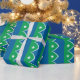 Wrapping Paper with a design with a design with the flag of Cedar Rapids, Iowa. A green and blue flag with a white star