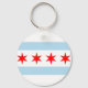 Button Keychain with flag of city of Chicago (largest city in Illinois), white and light blue striped flag with four red stars