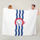 Fleece Blanket with flag of city of Cincinnati, Ohio; white flag with three blue waves with red “C” in the centre