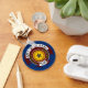 Button Keychain with flag of city of El Paso, Texas; blue flag with seal of the city