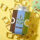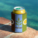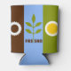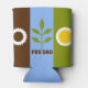 Can Cooler with flag of Fresno, California; flag with three vertical bands of brown, blue and green, with stylised illustrations of cog, plant and sun