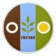 Ceramic Pull with flag of Fresno, California; flag with three vertical bands of brown, blue and green, with stylised illustrations of cog, plant and sun
