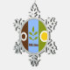 Snowflake Ornament Flag with flag of Fresno, California; flag with three vertical bands of brown, blue and green, with stylised illustrations of cog, plant and sun